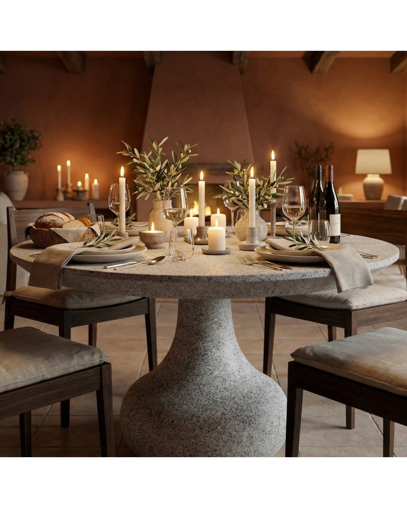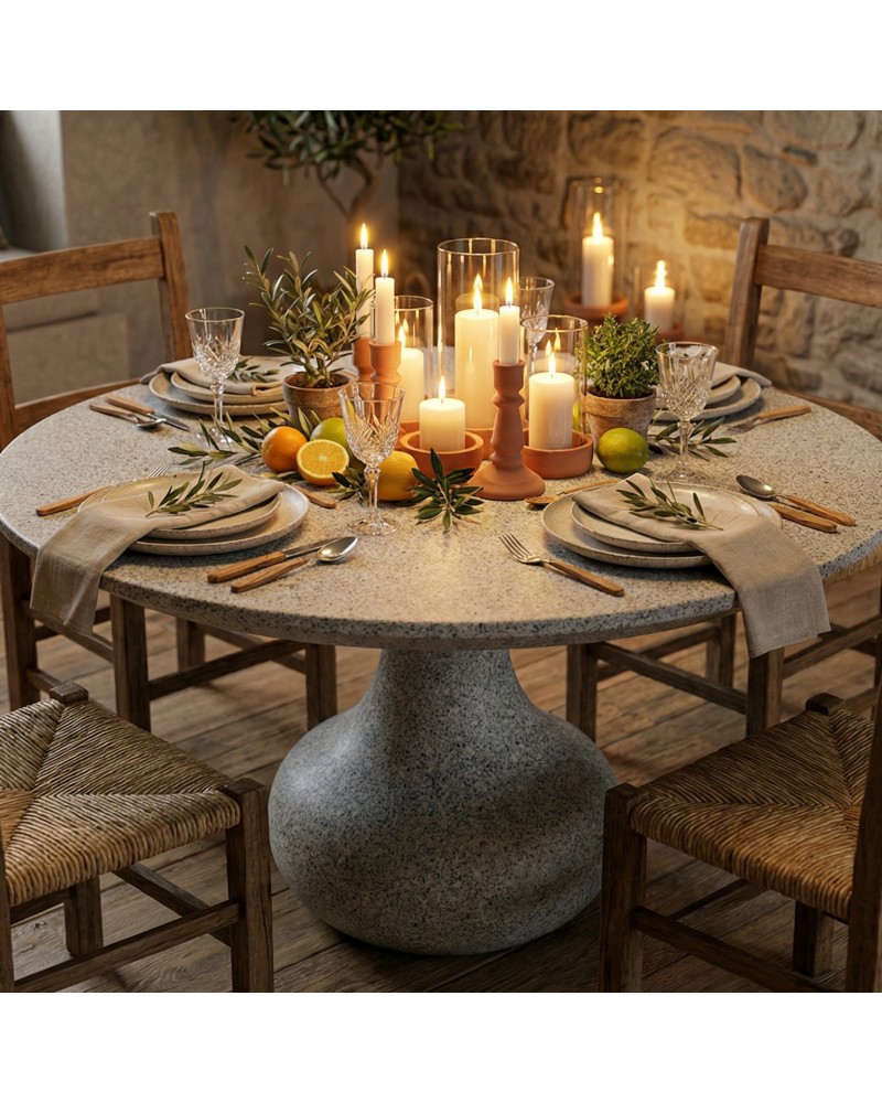 Doğanın en yalın ve akışkan formu olan su damlasının siluetinden ilham alan DROP, betonun sarsılmaz karakterine zerafet dolu bir yorum getiriyor. Tabana doğru genişleyen organik gövdesi, ince ve kusursuz dairesel tablasıyla birleşerek yaşam alanlarınızda monolitik bir heykel etkisi yaratır. Formun sürekliliği ve dairesel tasarımın sunduğu kapsayıcı oturma düzeni, DROP’u hem şık yemek odalarının hem de seçkin dış mekanların vazgeçilmez odak noktası yapar. DECOMAXI’nin yenilikçi hafif beton mühendisliği, bu anıtsal tasarımı şaşırtıcı bir hafiflik ve üstün dayanıklılıkla yaşam alanlarınıza taşır.