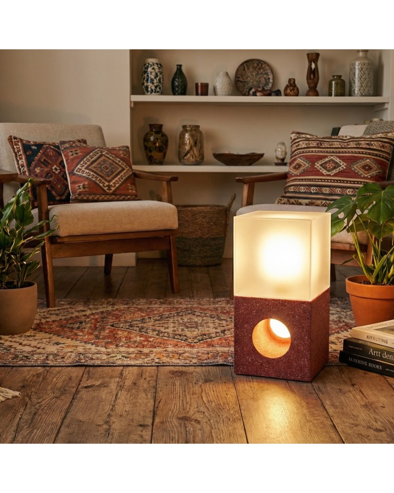 Betonun brütalist karakterini ışığın yumuşak geçişleriyle evcilleştiren Aura, mekanlarınıza mimari bir derinlik katmak için tasarlandı. Alt kısmındaki monolitik beton blok, üzerindeki dairesel boşluk sayesinde ışığa bir geçiş yolu sunarken; üst kısımdaki buzlu doku ışığı tüm mekana homojen ve huzurlu bir şekilde yayar. Geometrinin en saf hali olan küp formunu temel alan Aura, hem modern bir masa lambası hem de etkileyici bir yer aydınlatması olarak yaşam alanlarınızda mistik bir atmosfer yaratır.