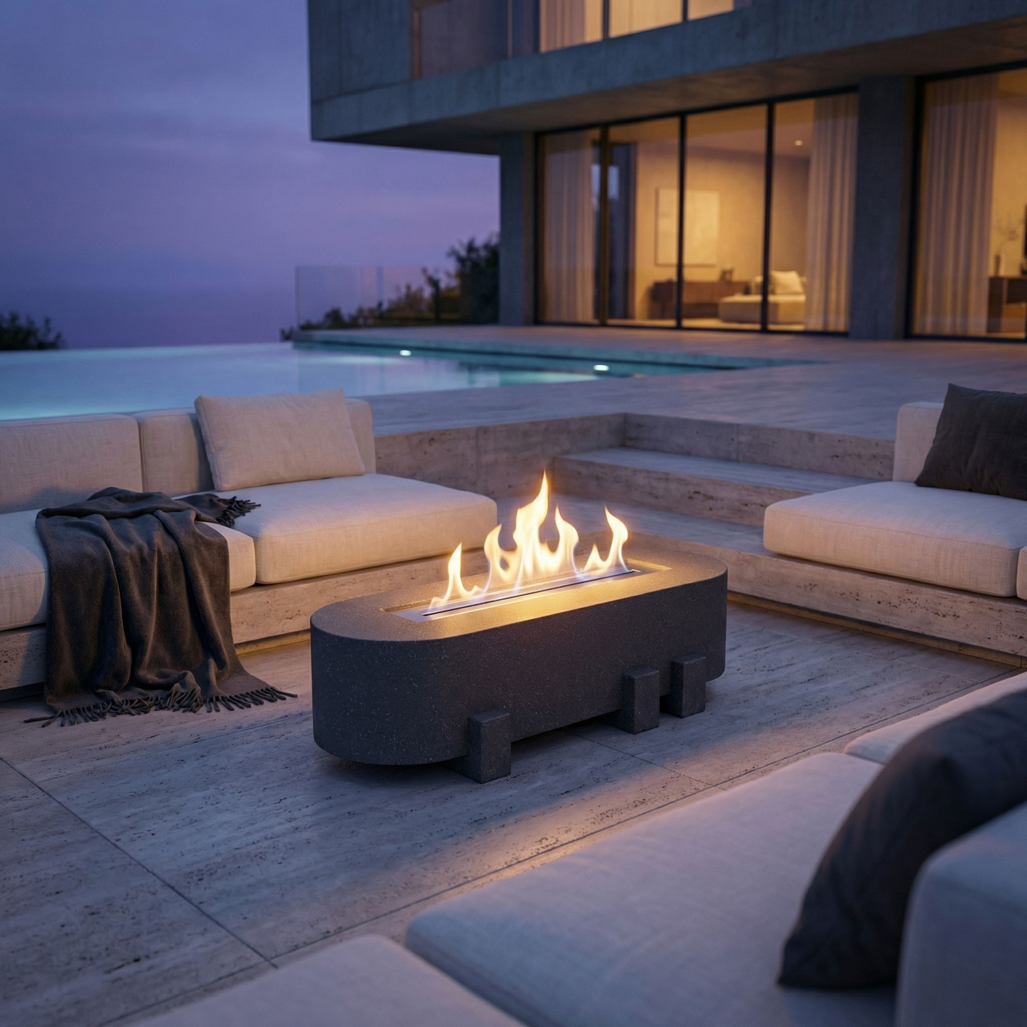 Mimarideki "yapısal destek" kavramını estetik bir imzaya dönüştüren Spouse, brütalist dokuyu endüstriyel bir zarafetle dış mekanlarınıza taşıyor. Gövdeyi dışarıdan kavrayan karakteristik dikdörtgen ayak yapısı, oval (kapsül) formundaki monolitik gövdeye heykelsi bir ritim ve derinlik katar. 250 cm’lik anıtsal uzunluğuyla geniş oturma gruplarının ve prestijli açık hava projelerinin vazgeçilmez eşlikçisi olan bu tasarım, ateşin sıcaklığını mimari bir otoriteyle buluşturur. DECOMAXI’nin ileri hafif beton teknolojisiyle hayat bulan Spouse, devasa ölçeğine rağmen sunduğu şaşırtıcı hafiflik ve üstün dayanıklılıkla mekanın ruhunu yükseltir.