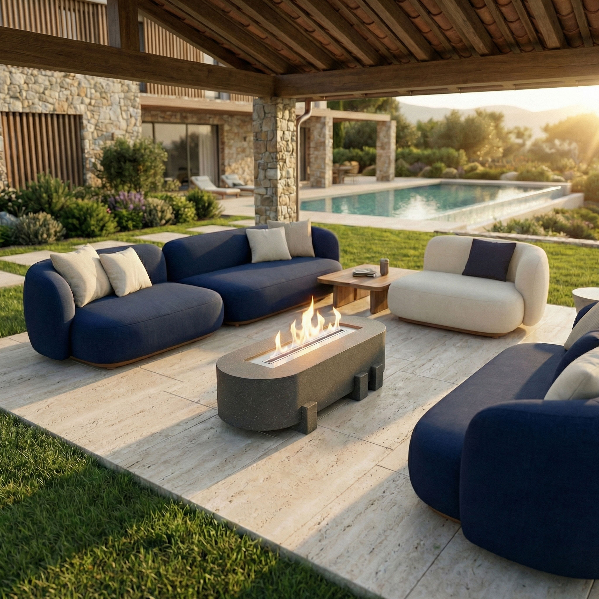 DECOMAXI Tasarım Notu: Spouse serisi, oval formun birleştirici etkisiyle sosyal alanlarda sıcak bir odak noktası yaratır. Betonun ham gücü ile modern ayak detayları bu tasarımda prestijli bir açık hava deneyimine dönüşüyor.