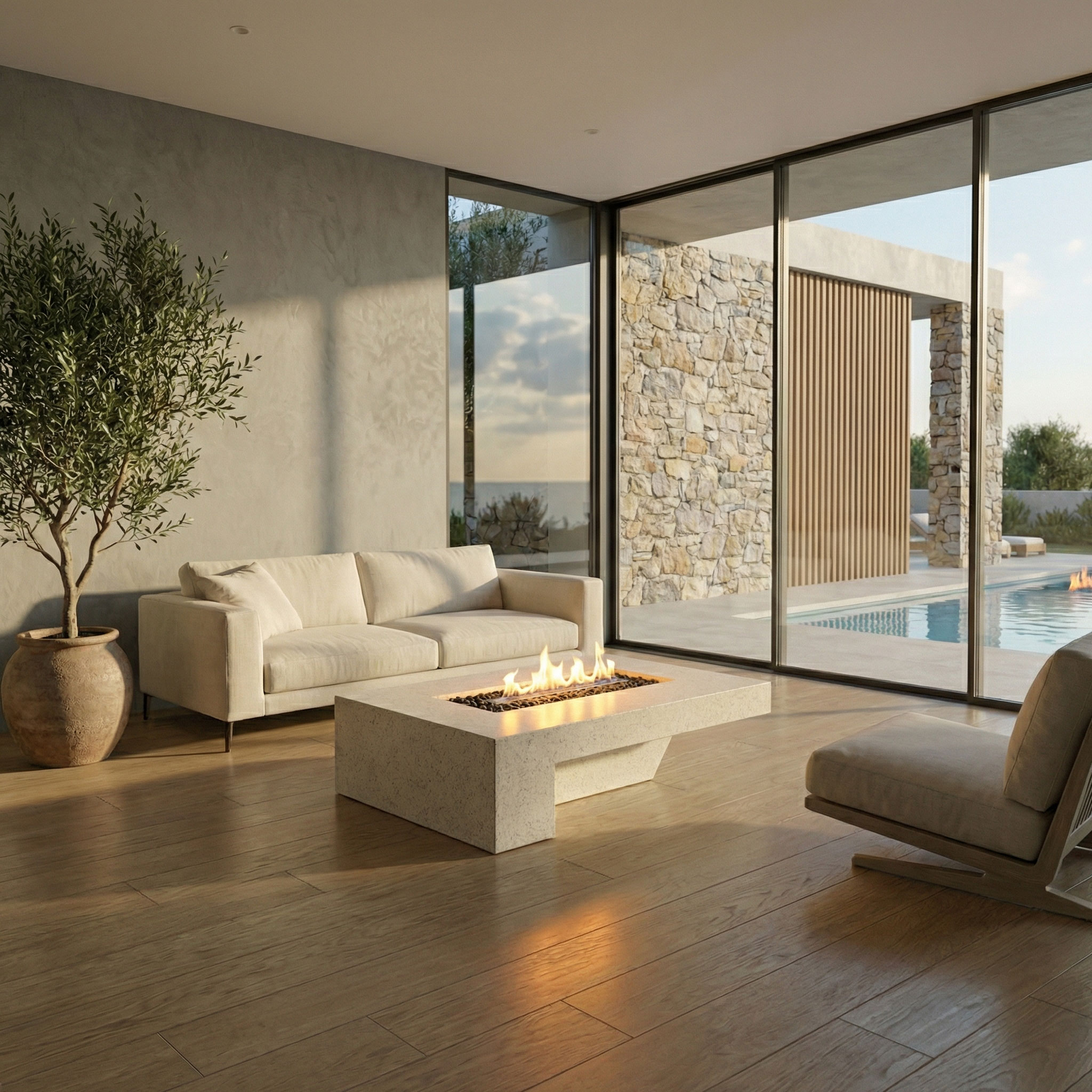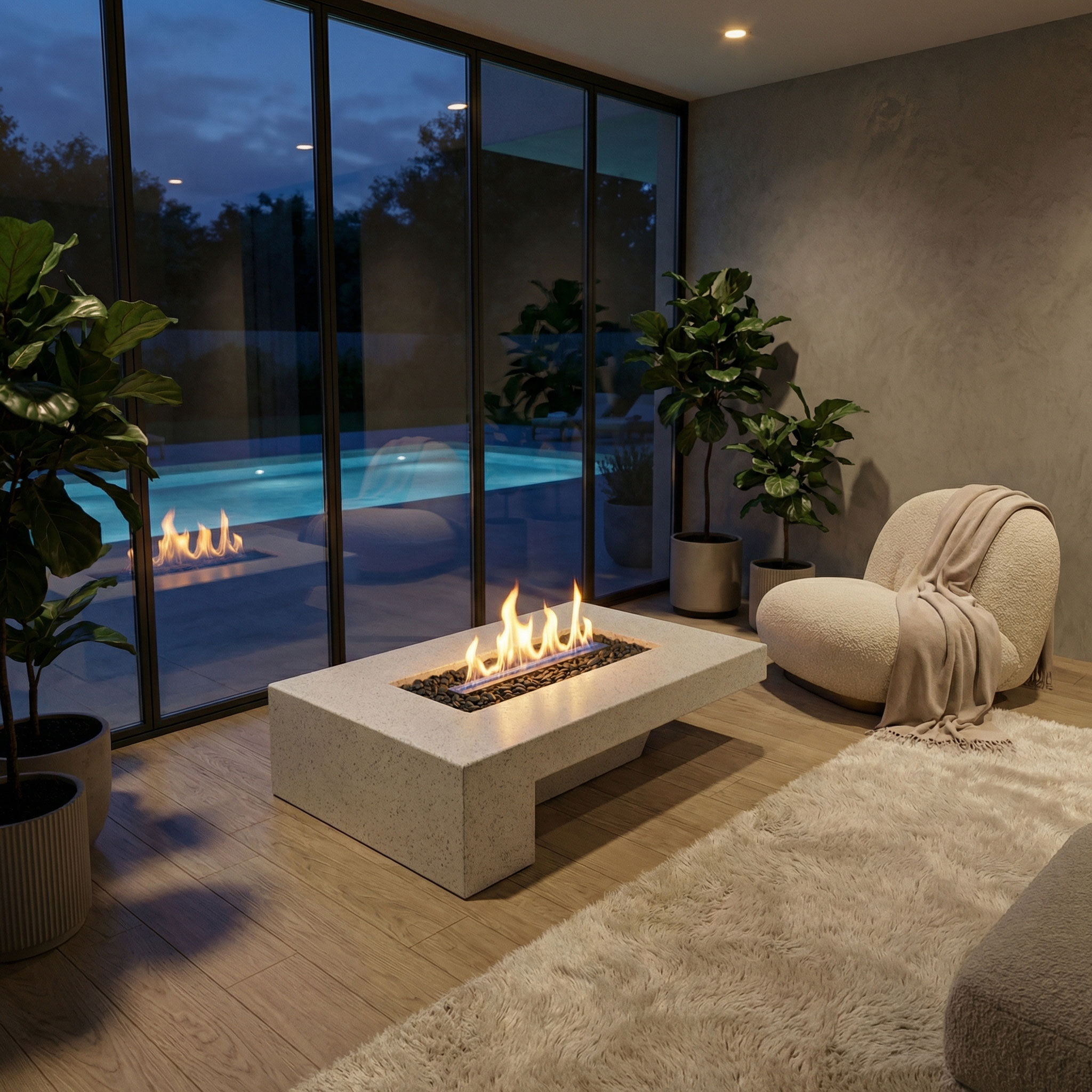 DECOMAXI Tasarım Notu: AIRY Ateş Çukuru, mimari bir ifade biçimidir. Geniş oturma grupları ve açık teraslar için ideal olan bu tasarım, ateşin ruhunu betonun ağırbaşlı zarafetiyle buluşturur.