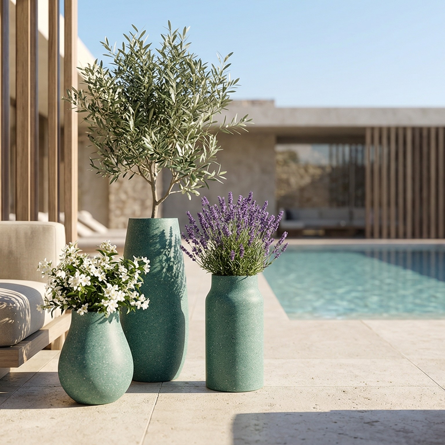 İsmini sunduğu form çeşitliliğinden alan Sort, modern dekorasyonda bütünsel bir koleksiyon anlayışını temsil ediyor. Her boyutun kendine özgü bir silüete sahip olduğu bu seri, brütalist beton dokusunu organik hatlarla buluşturarak mekanda ritmik bir derinlik yaratır. 100 cm’lik anıtsal yüksekliğe ulaşan dikey formları ve yumuşak kavisli gövde yapılarıyla bitkileriniz için heykelsi birer sahne sunar. DECOMAXI’nin yenilikçi hafif beton teknolojisiyle üretilen Sort, masif duruşunu şaşırtıcı bir hafiflikle birleştirerek hem vizyoner iç mekan kurgularında hem de prestijli peyzaj projelerinde sanatsal bir imza bırakır.