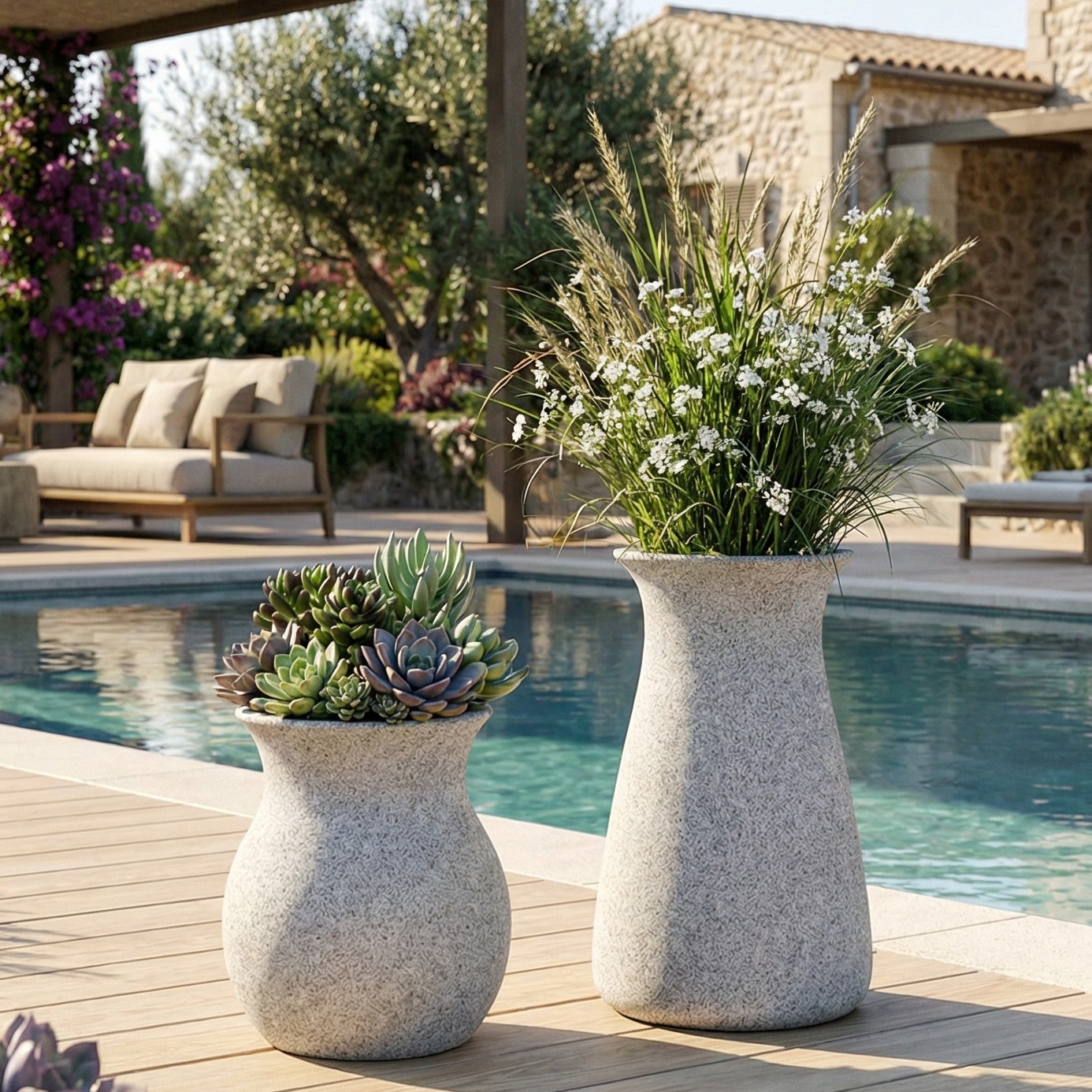 DECOMAXI Tasarım Notu: SAC serisi, organik formuyla bitkilerinize odaklanırken mekânda doğal bir ritim yaratır. Betonun monolitik gücü, bu tasarımda modern bir amfora zarafetiyle buluşuyor.