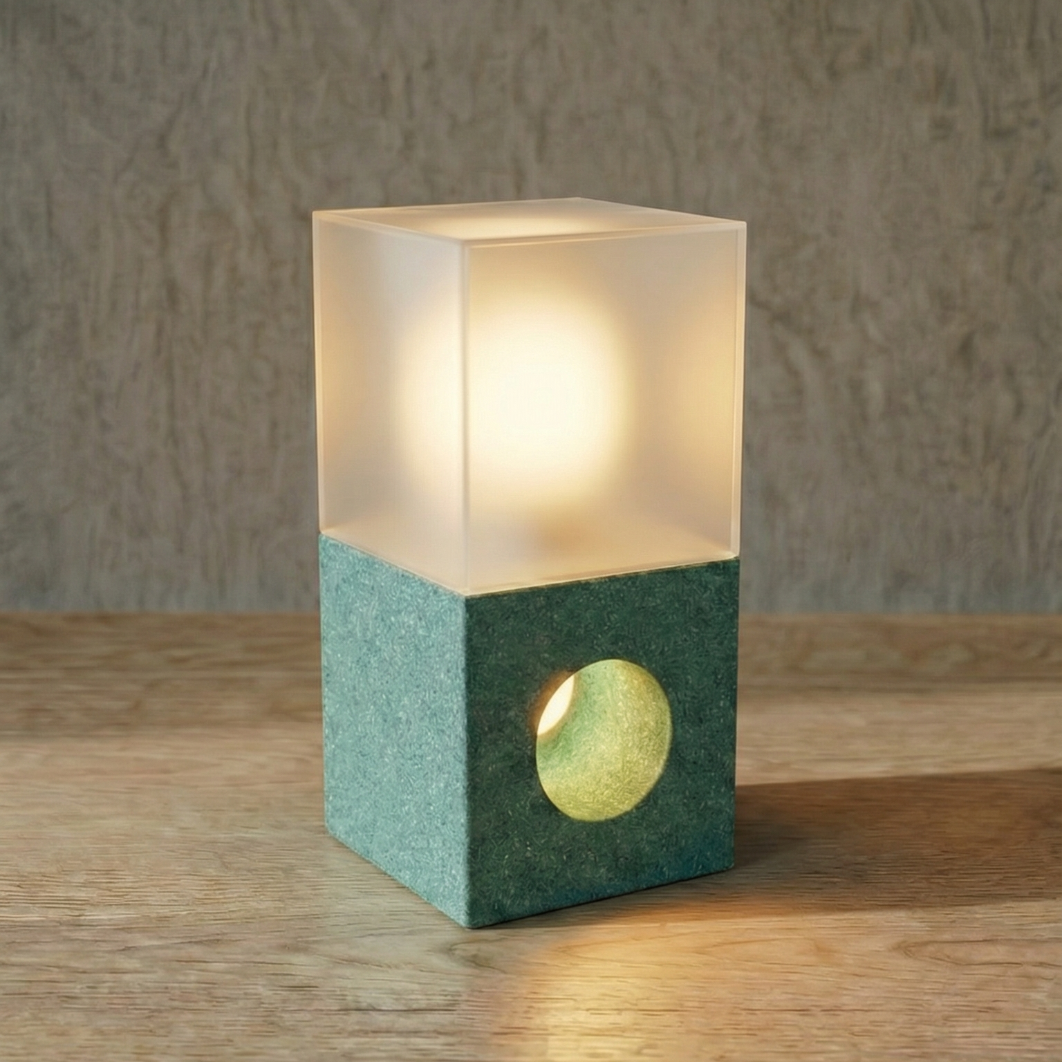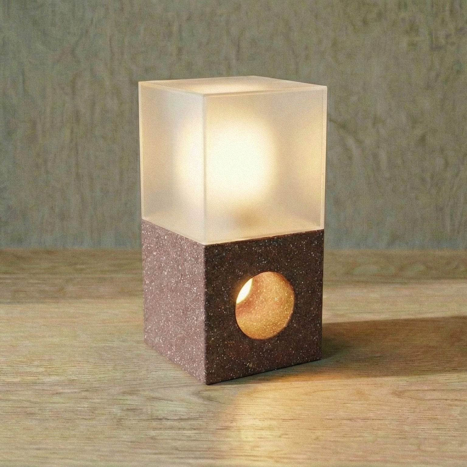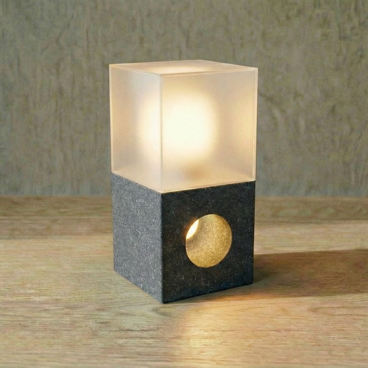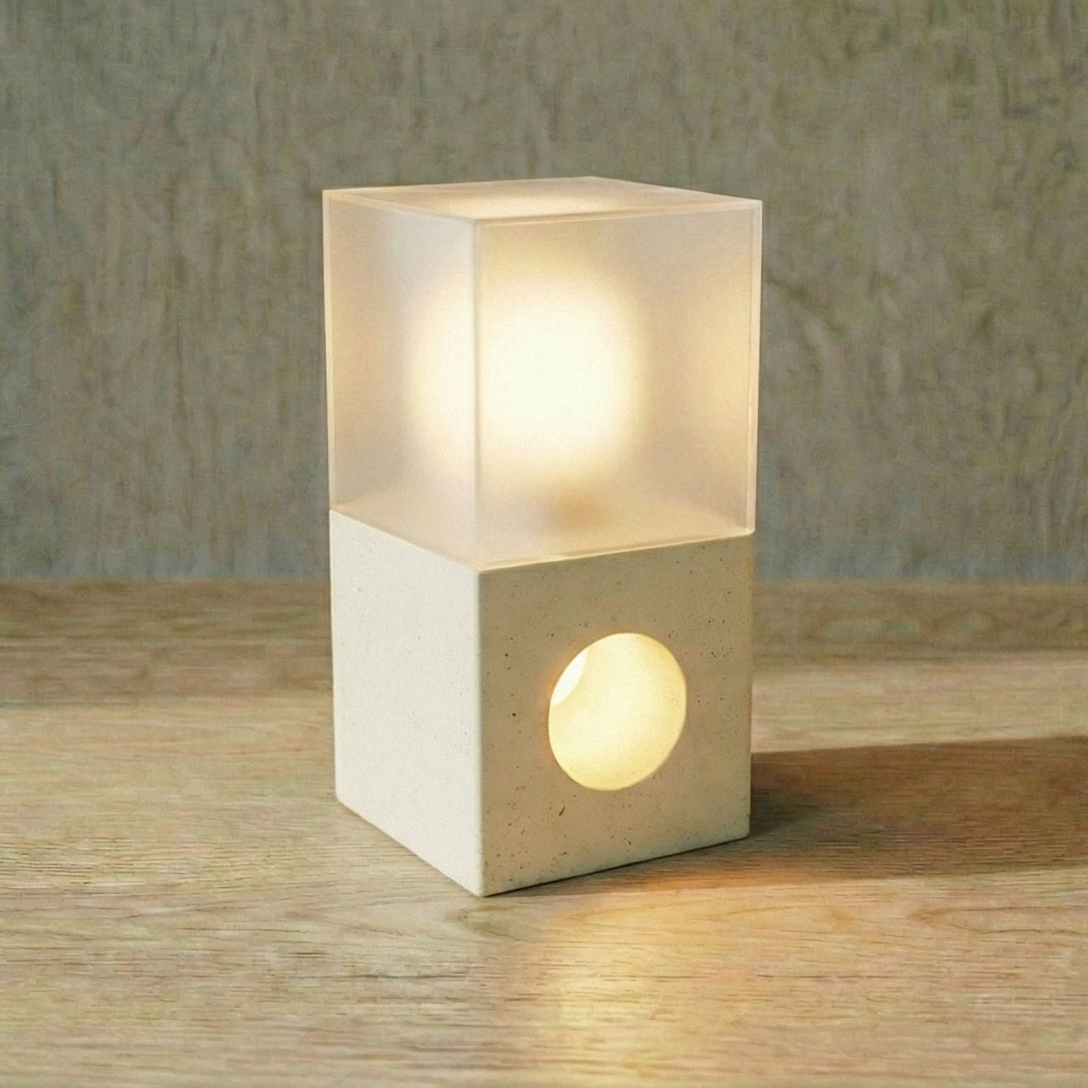 Betonun brütalist karakterini ışığın yumuşak geçişleriyle evcilleştiren Aura, mekanlarınıza mimari bir derinlik katmak için tasarlandı. Alt kısmındaki monolitik beton blok, üzerindeki dairesel boşluk sayesinde ışığa bir geçiş yolu sunarken; üst kısımdaki buzlu doku ışığı tüm mekana homojen ve huzurlu bir şekilde yayar. Geometrinin en saf hali olan küp formunu temel alan Aura, hem modern bir masa lambası hem de etkileyici bir yer aydınlatması olarak yaşam alanlarınızda mistik bir atmosfer yaratır.