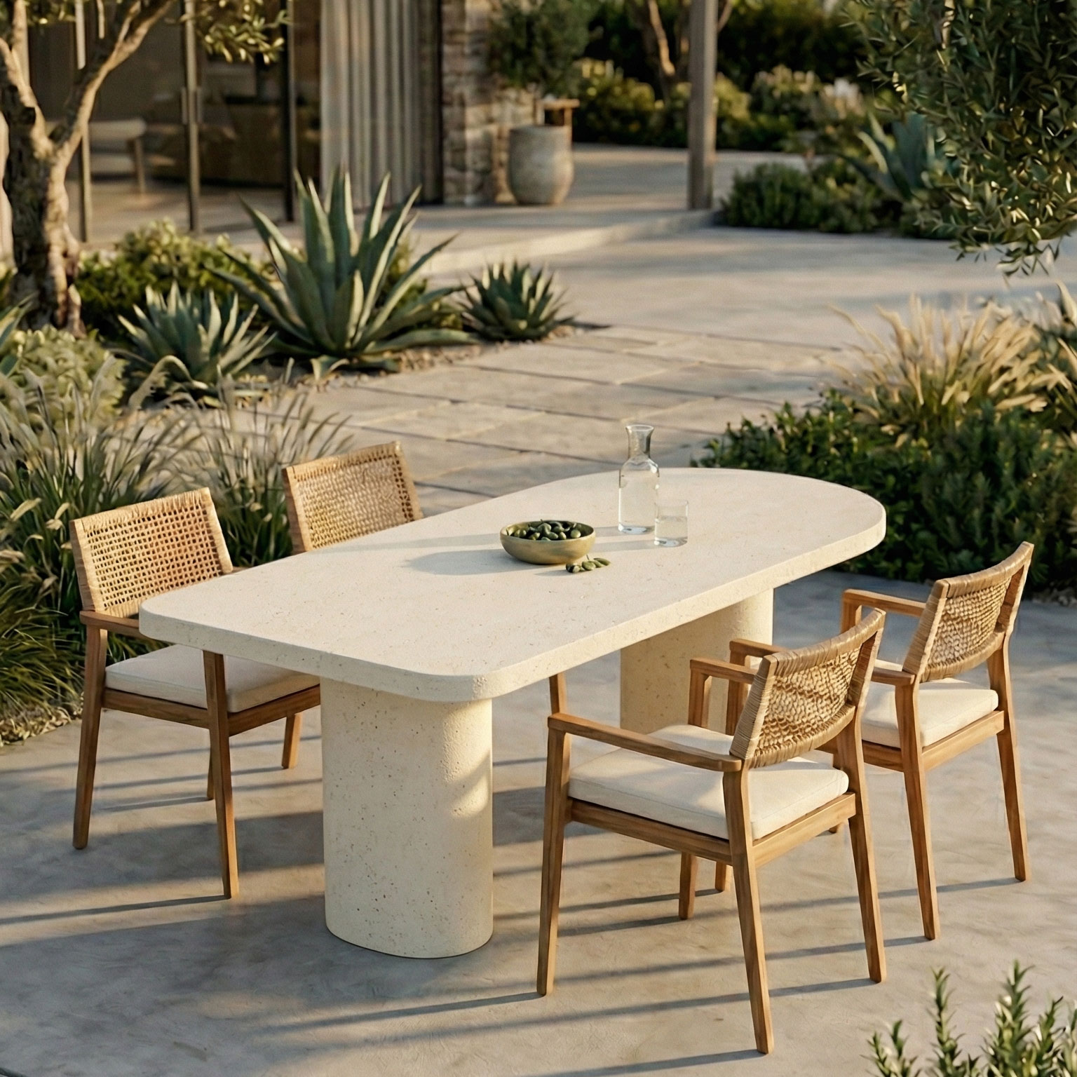 DECOMAXI Tasarım Notu: Hija serisi, mekanınıza hem bir yemek masası hem de bir mimari anıt kazandırır. Betonun ham dokusu, asimetrik formun getirdiği modern vizyonla bu tasarımda elit bir hikayeye dönüşüyor.