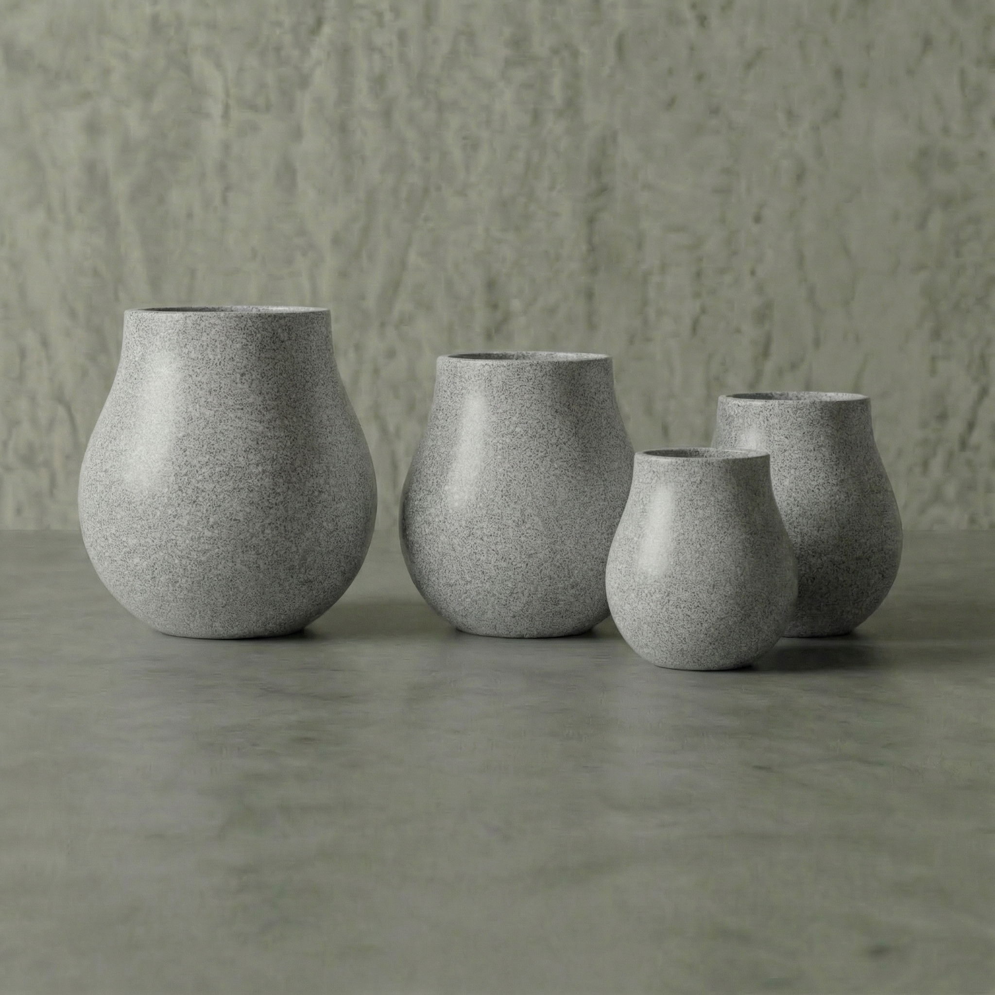 Doğanın en temel kap formlarından biri olan vazoyu modern brütalizmin yalın çizgileriyle yeniden yorumlayan Vaas, yaşam alanlarınıza heykelsi bir dinginlik katıyor. Gövdesindeki yumuşak kavisler ve tabana doğru yayılan monolitik yapısı, betonun sarsılmaz gücünü organik bir zarafetle dengeler. DECOMAXI’nin yenilikçi hafif beton teknolojisiyle hayat bulan Vaas serisi, farklı boyut seçenekleriyle hem minimalist iç mekanlarda modern bir vurgu yapar, hem de geniş dış mekan peyzajlarında mimari bir derinlik yaratır. Betonun zamansız dokusunu en saf haliyle deneyimleyin.