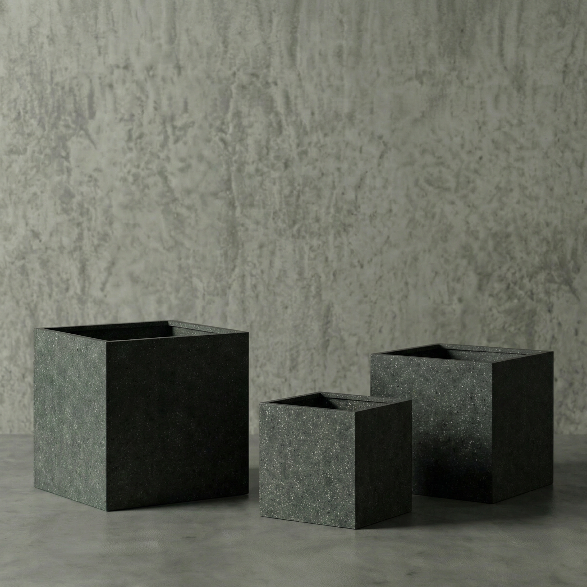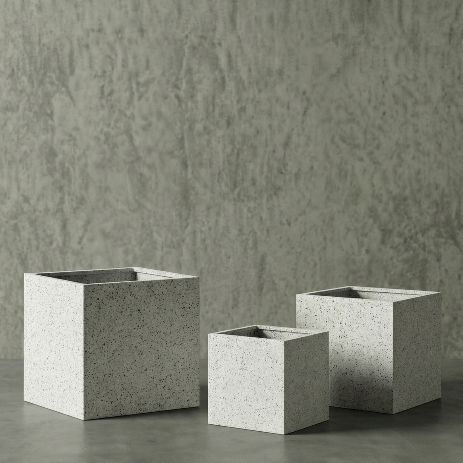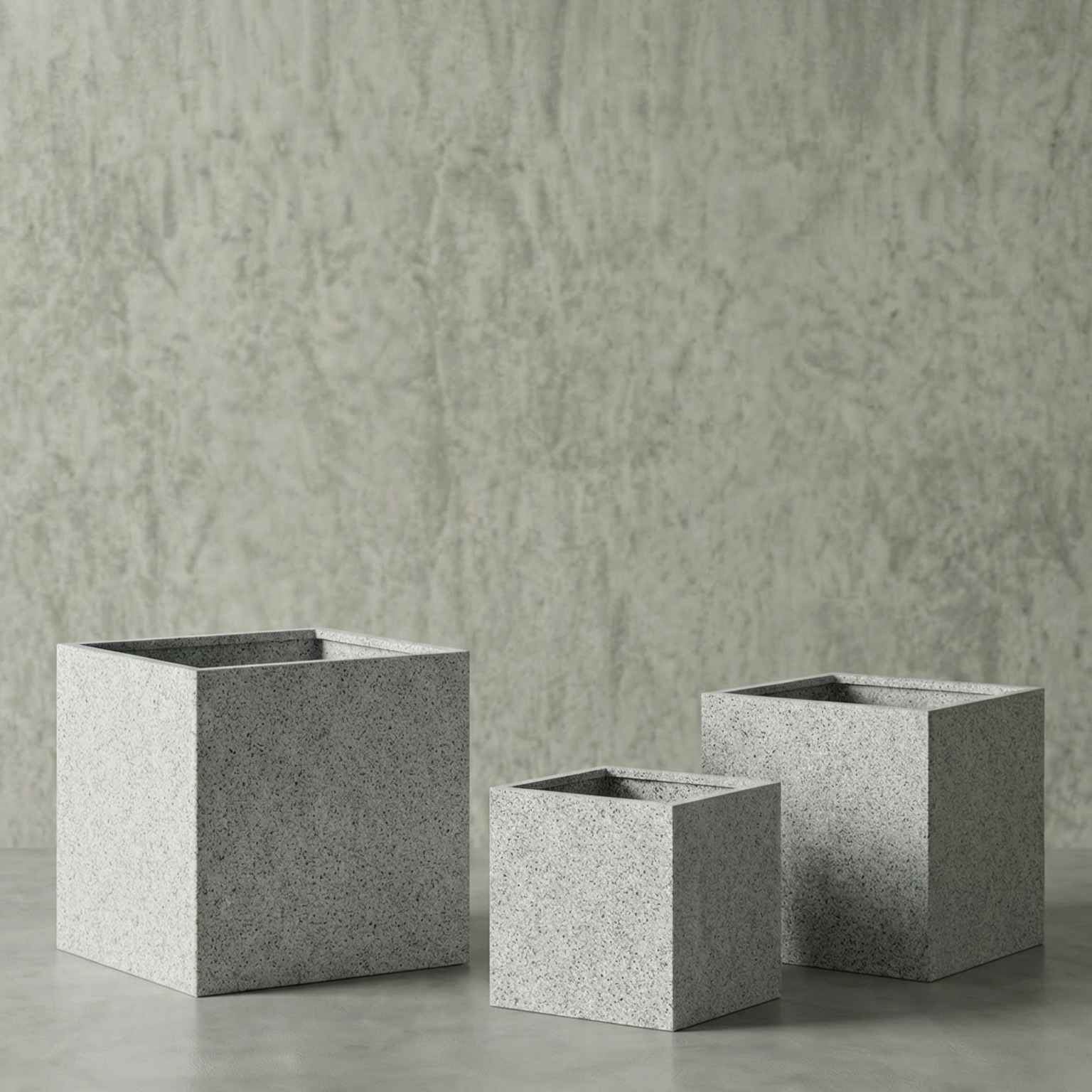 DECOMAXI Tasarım Notu: Angular serisi, saf geometrisiyle farklı boyutlar bir arada kullanılarak katmanlı ve modern peyzaj düzenlemeleri oluşturmak için idealdir. Her bir küp, betonun dingin gücünü temsil eder.