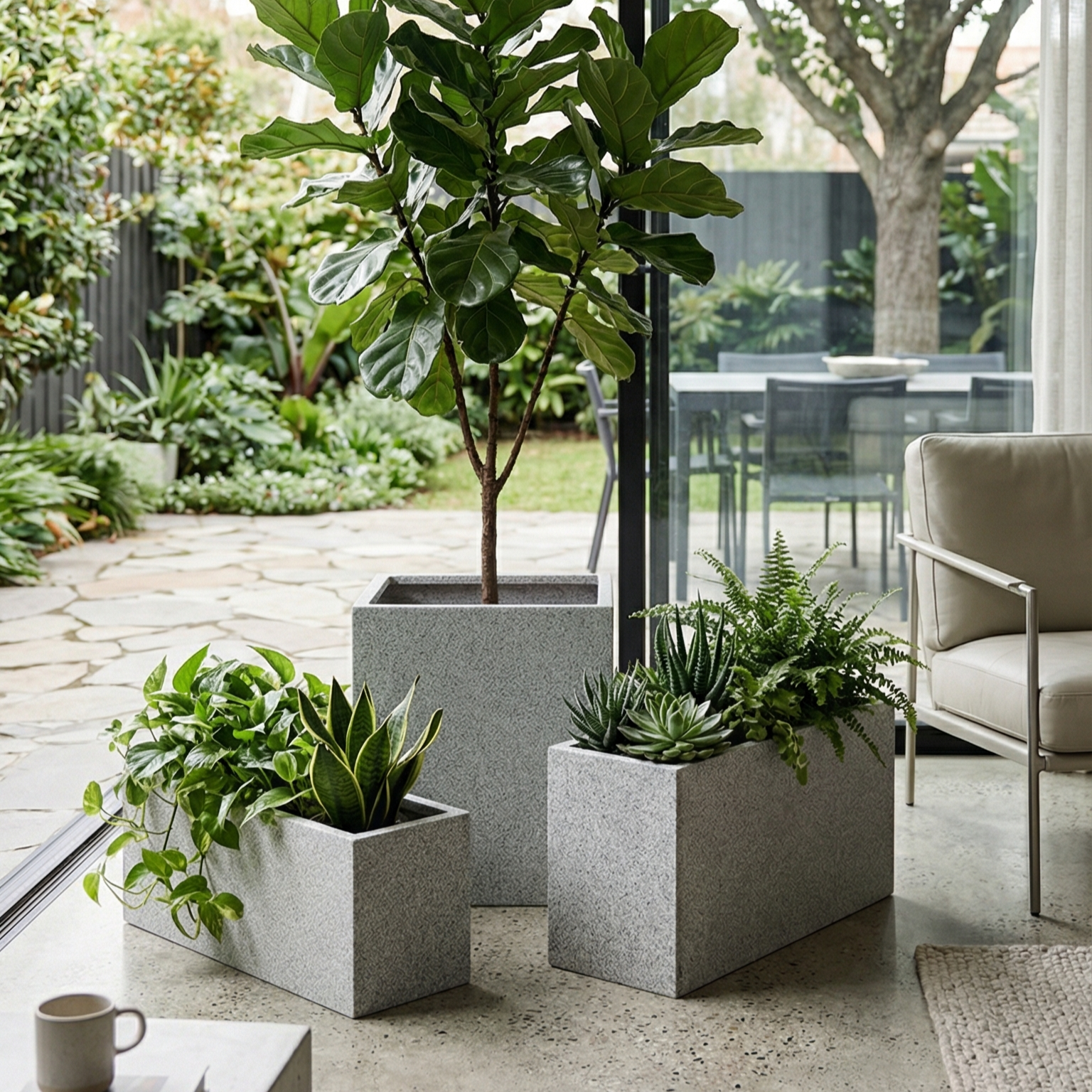 DECOMAXI Tasarım Notu: ECKIG serisi, lineer formuyla mekân kurgusunu güçlendirmek ve bitkilerle mimari sınırları estetik bir dille çizmek için tasarlandı. Betonun zamansız gücünü modern bir disiplinle keşfedin.