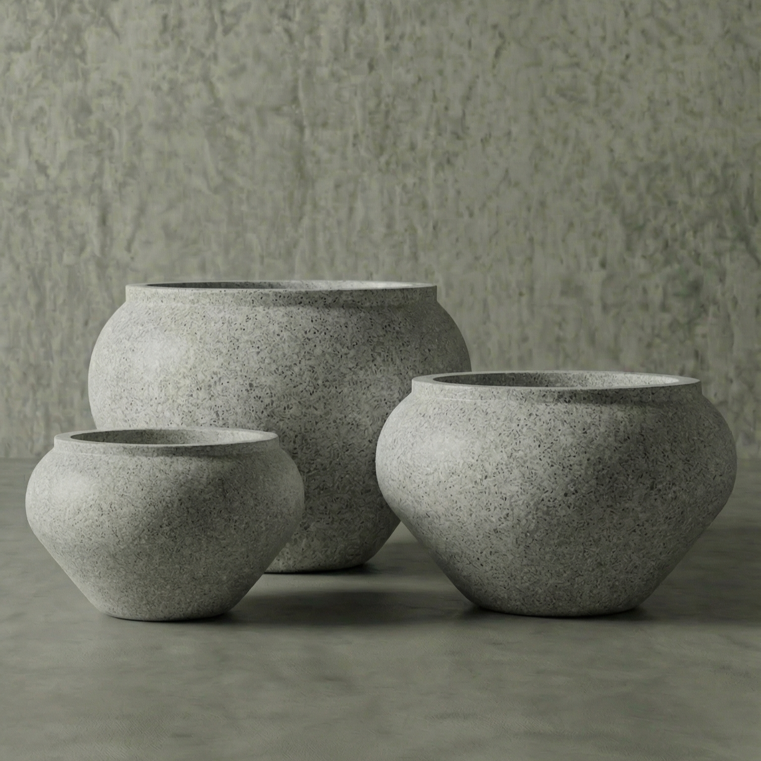 Antik formların anıtsal gücünü modern brütalizmin yalın çizgileriyle birleştiren Lobben, peyzaj tasarımına heykelsi bir derinlik katıyor. Geniş hacmi ve tabana doğru zarifçe daralan kavisli siluetiyle mekanın enerjisini sabitleyen bir odak noktası görevi görür. DECOMAXI’nin yenilikçi hafif beton teknolojisiyle hayat bulan Lobben serisi, 113 cm çapa ve 80 cm yüksekliğe ulaşan dev boyutlarına rağmen sunduğu şaşırtıcı hafifliğiyle prestijli projelerde kullanım kolaylığı sağlar. Betonun zamansız dokusunun en görkemli haliyle bitkileriniz için sanatsal bir sahne yaratın.