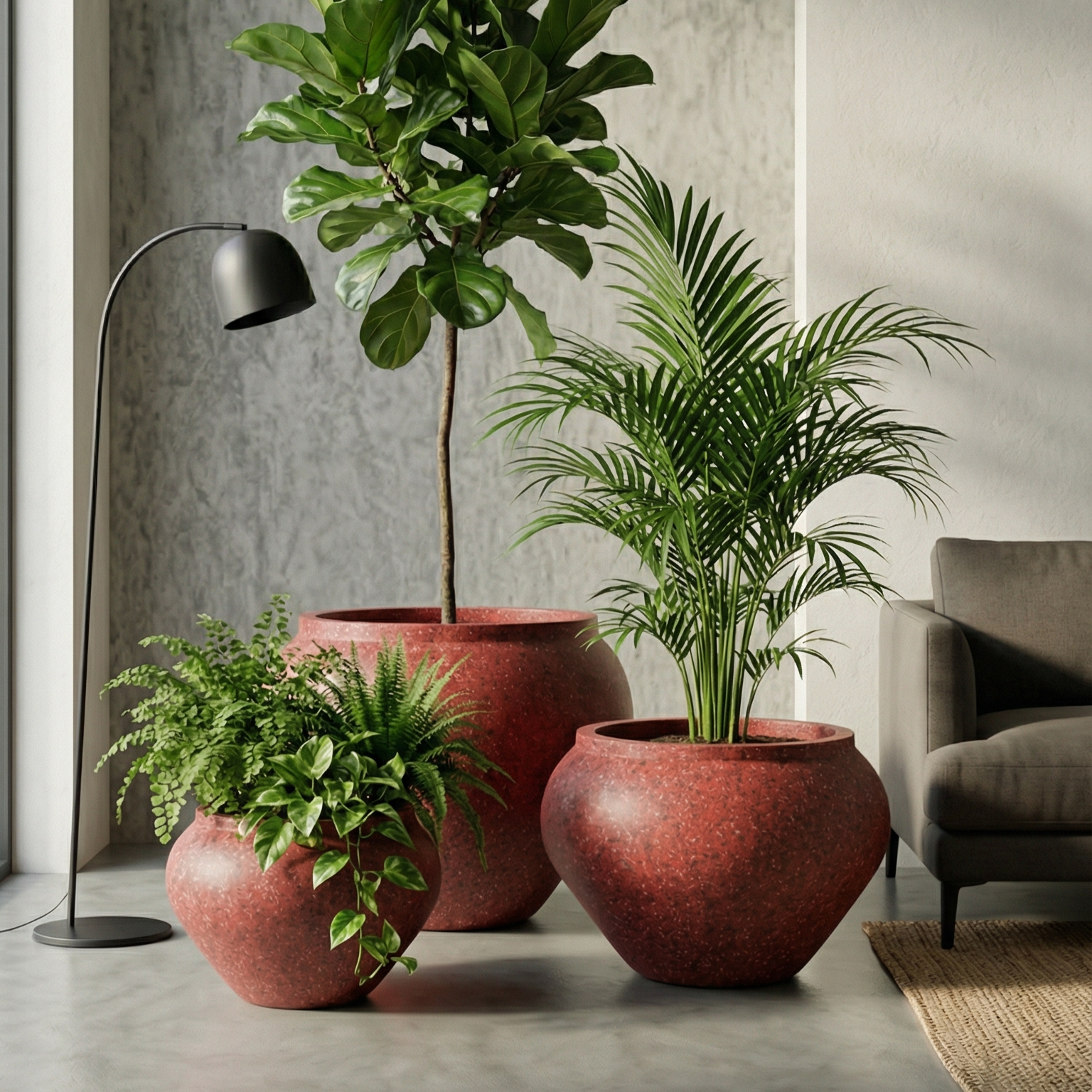 DECOMAXI Tasarım Notu: LOBBEN serisi, devasa ölçeği ve dingin formuyla mekanda sarsılmaz bir denge unsuru oluşturur. Betonun monolitik estetiği, bu tasarımda modern bir peyzaj harikasına dönüşüyor.