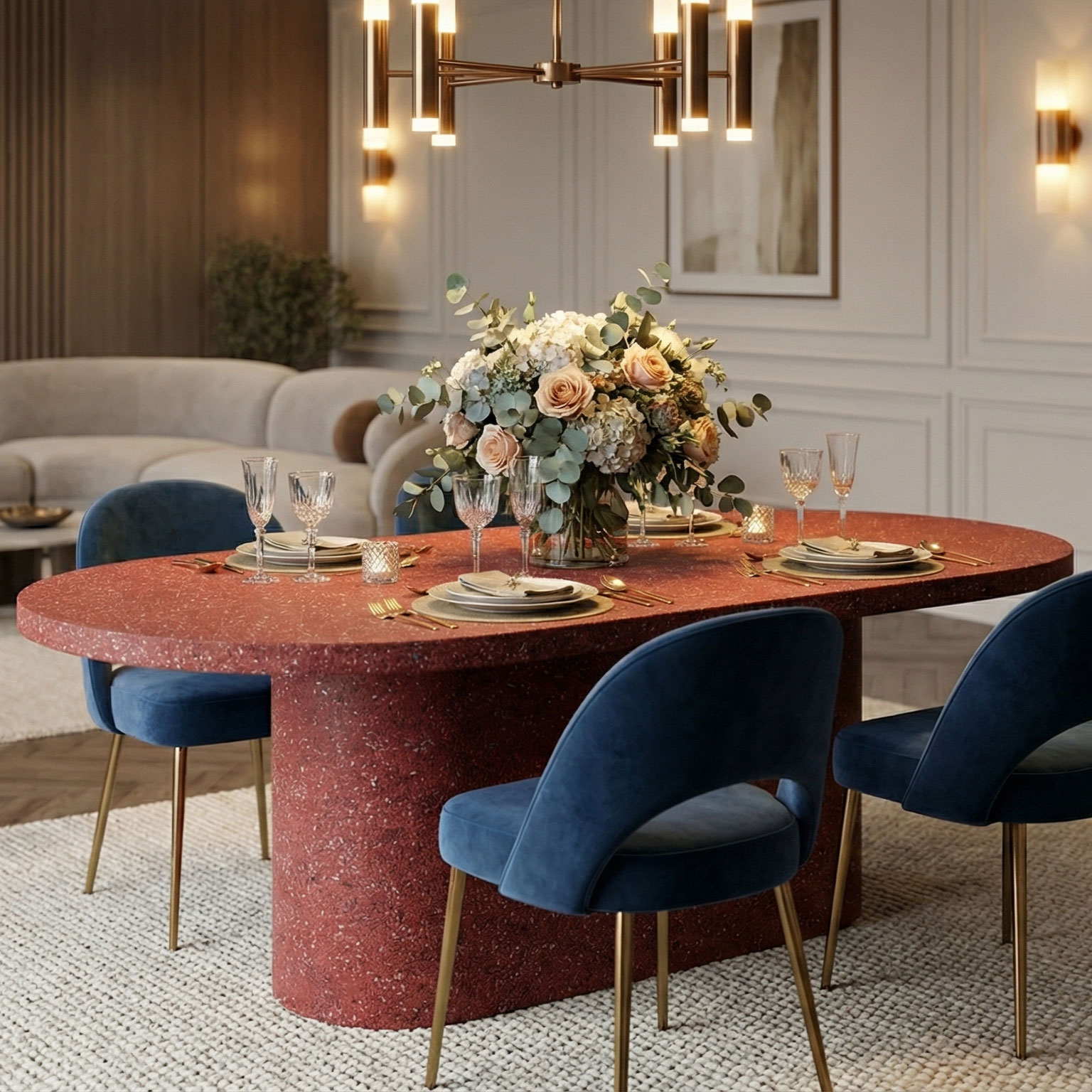 DECOMAXI Tasarım Notu: OVAAL serisi, monolitik merkezi kaidesi ve dingin tabla formuyla mekanda sarsılmaz bir denge unsuru oluşturur. Betonun brütalist ruhu, bu masada modern bir mimari dil birliğiyle evinizde hissedilir.