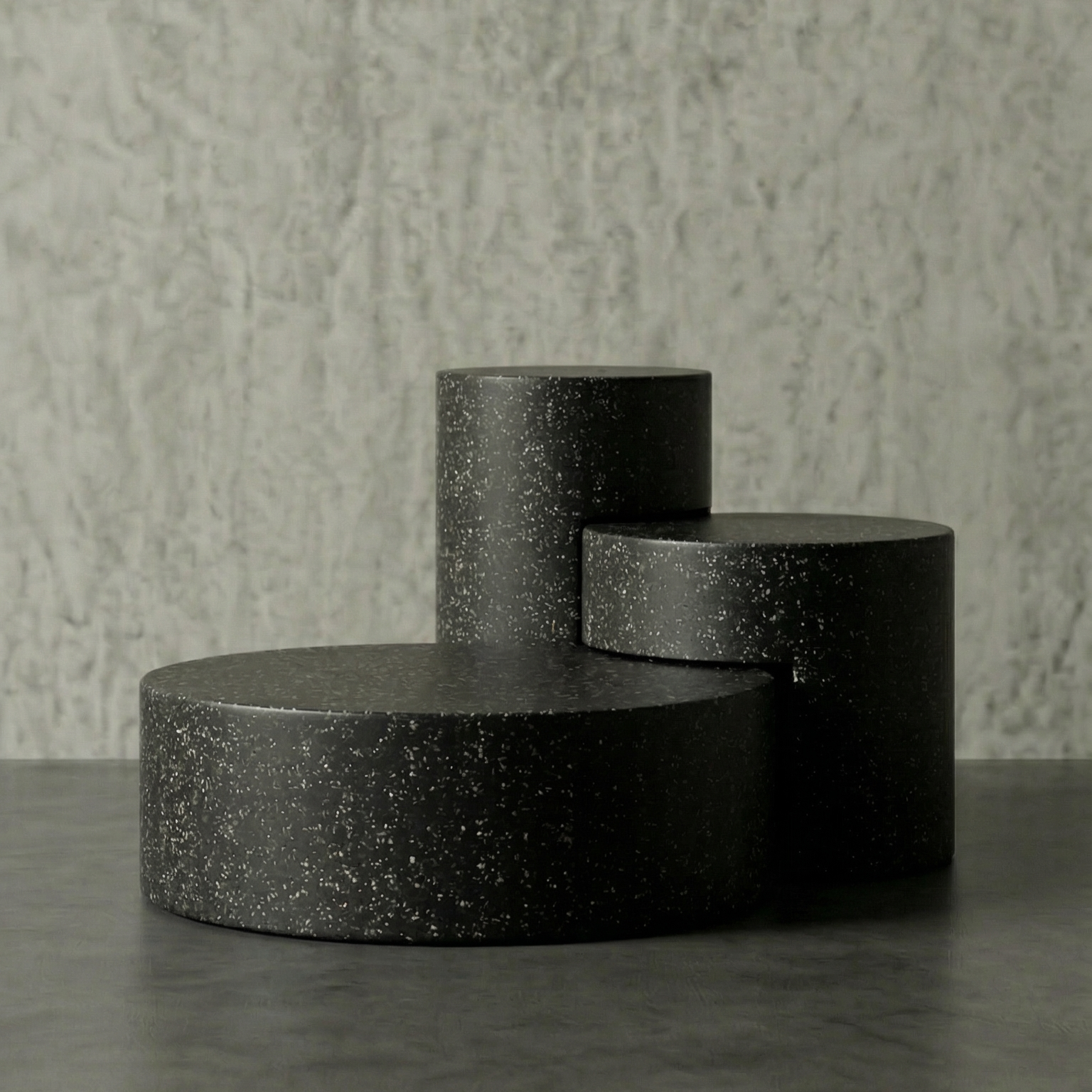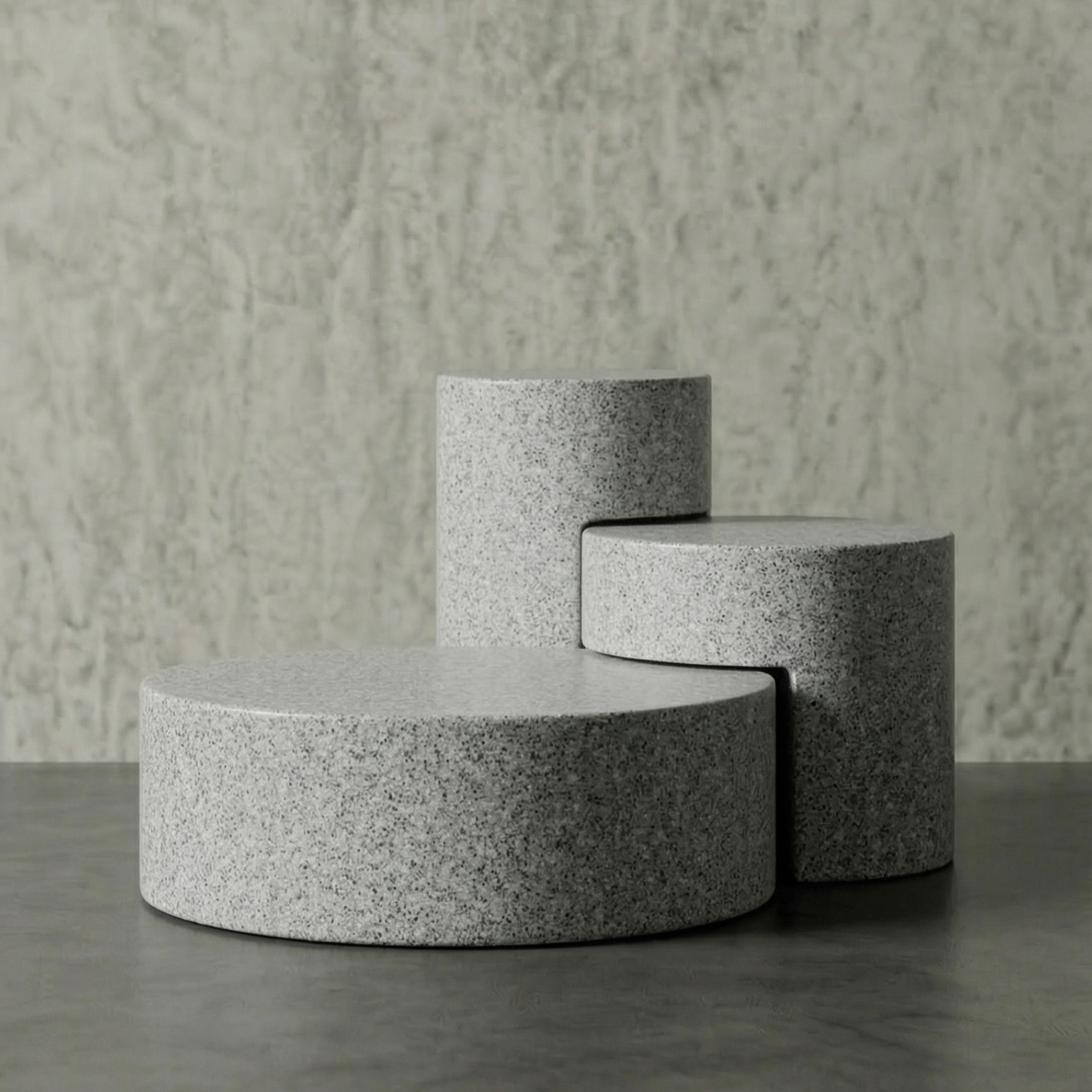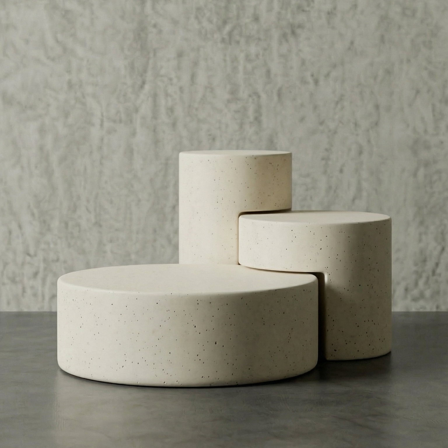 DECOMAXI Tasarım Notu: TRIANGLE serisi, üçlü modüler yapısıyla mekanda ritmik bir derinlik yaratır. Betonun monolitik gücü, kademeli dairesel formlarla bu tasarımda modern bir sanat yerleştirmesine dönüşüyor.
