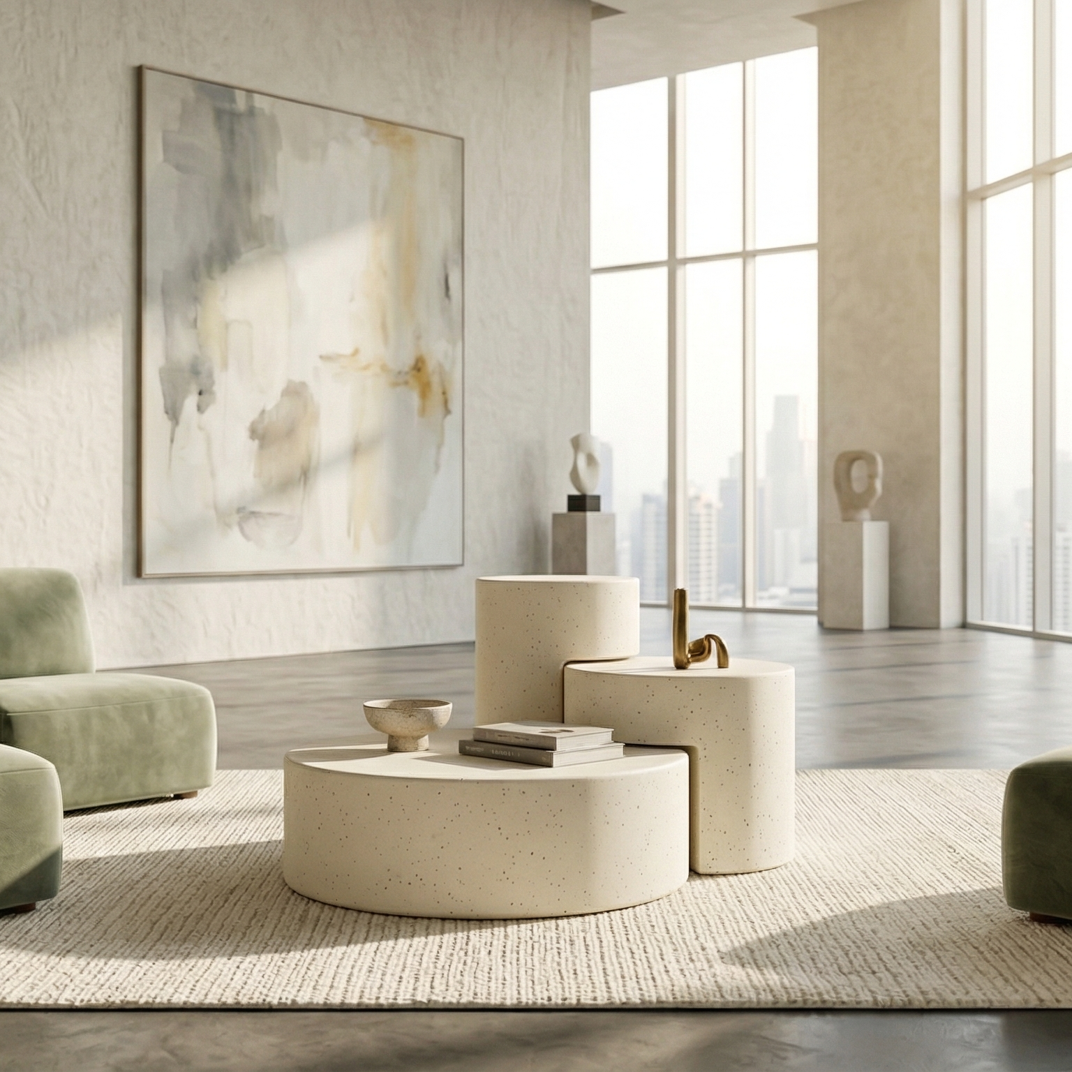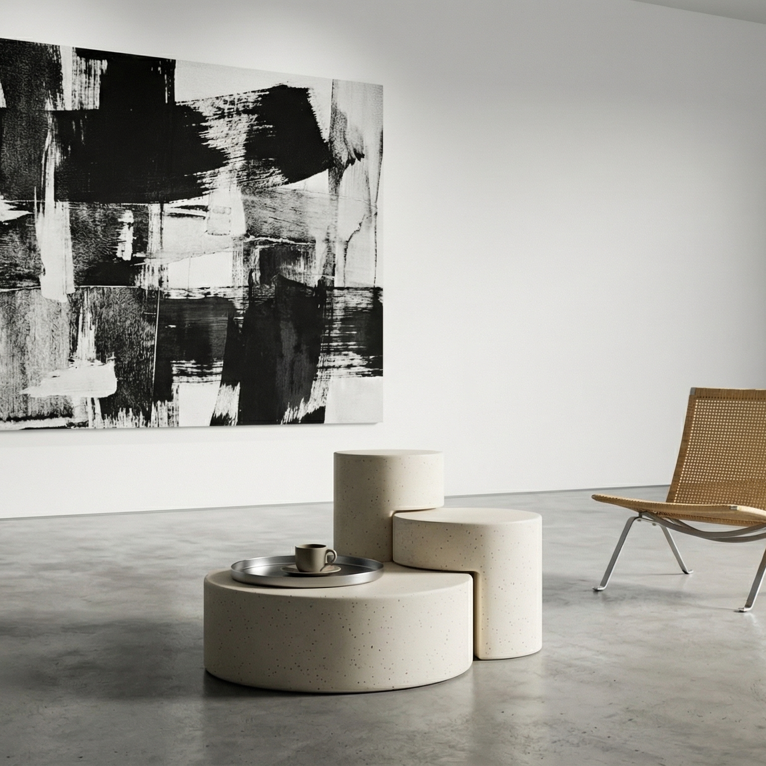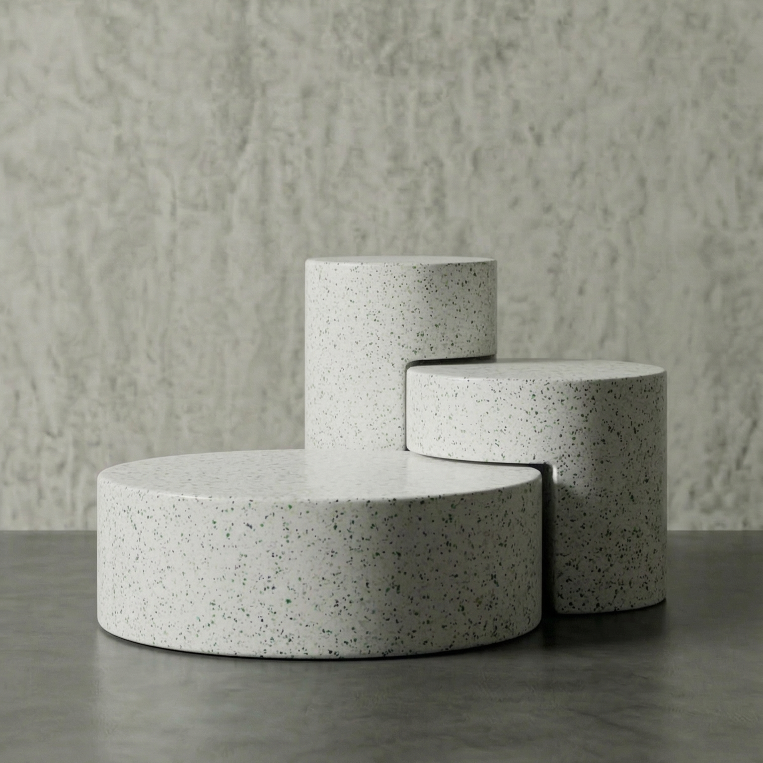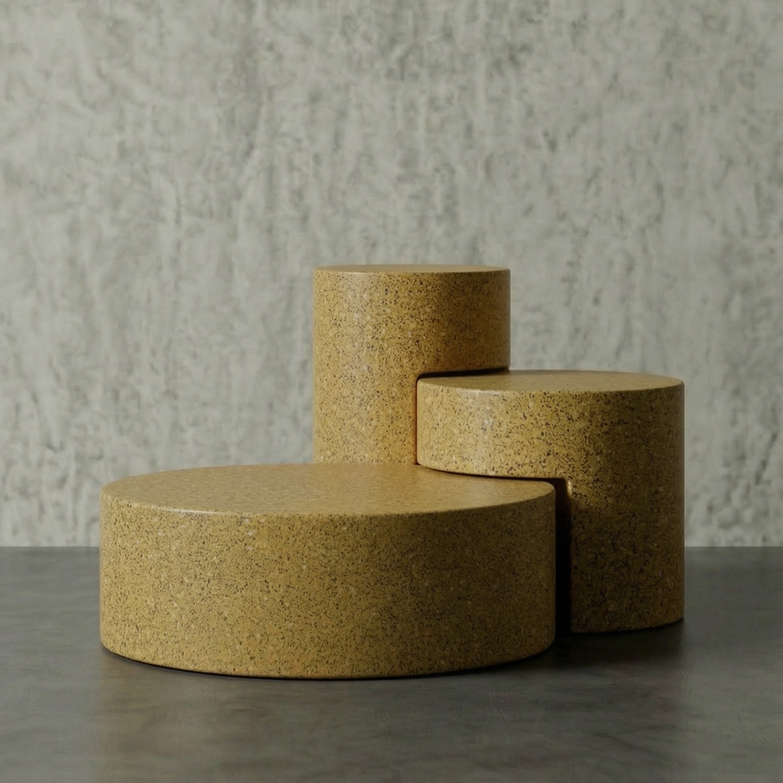 DECOMAXI Tasarım Notu: TRIANGLE serisi, üçlü modüler yapısıyla mekanda ritmik bir derinlik yaratır. Betonun monolitik gücü, kademeli dairesel formlarla bu tasarımda modern bir sanat yerleştirmesine dönüşüyor.