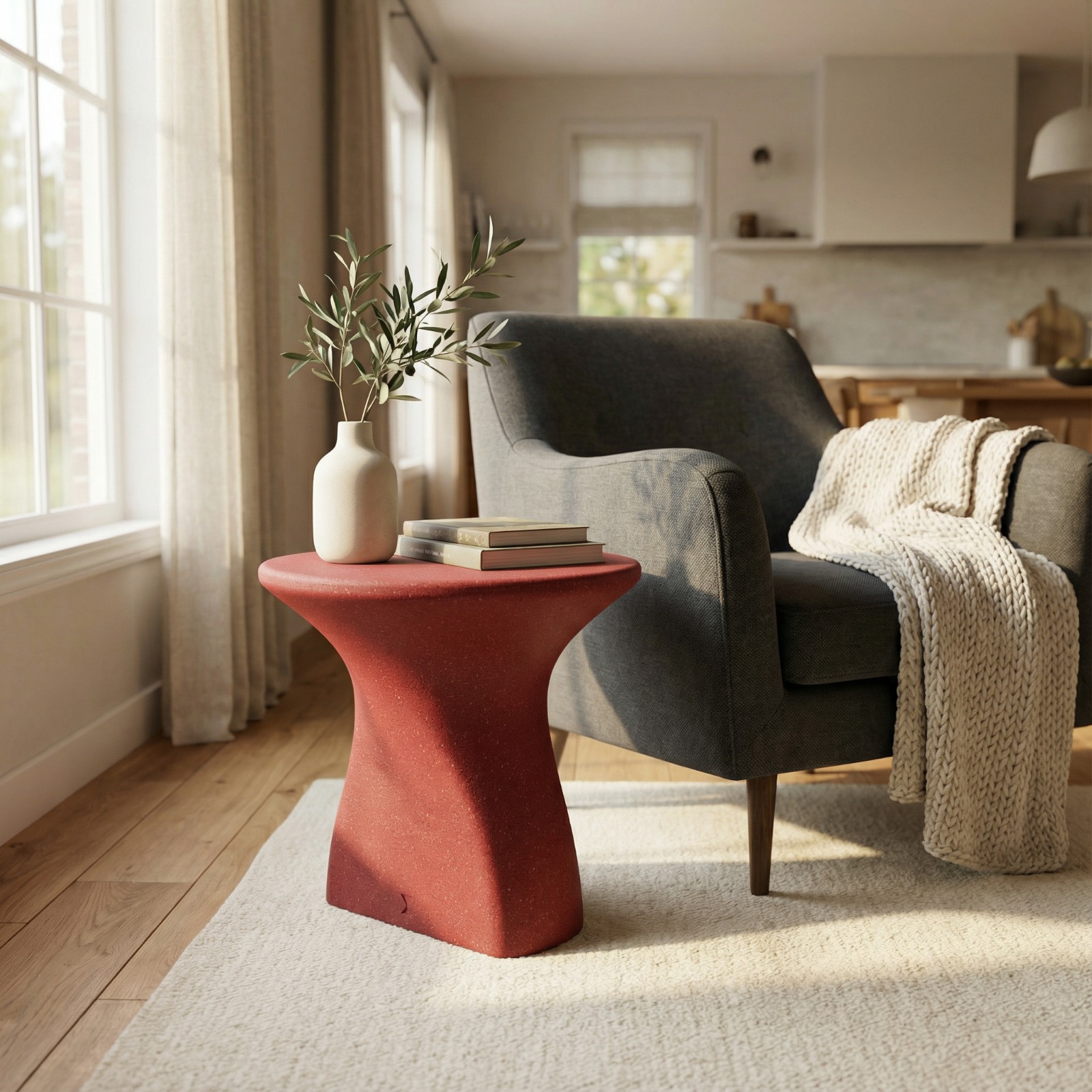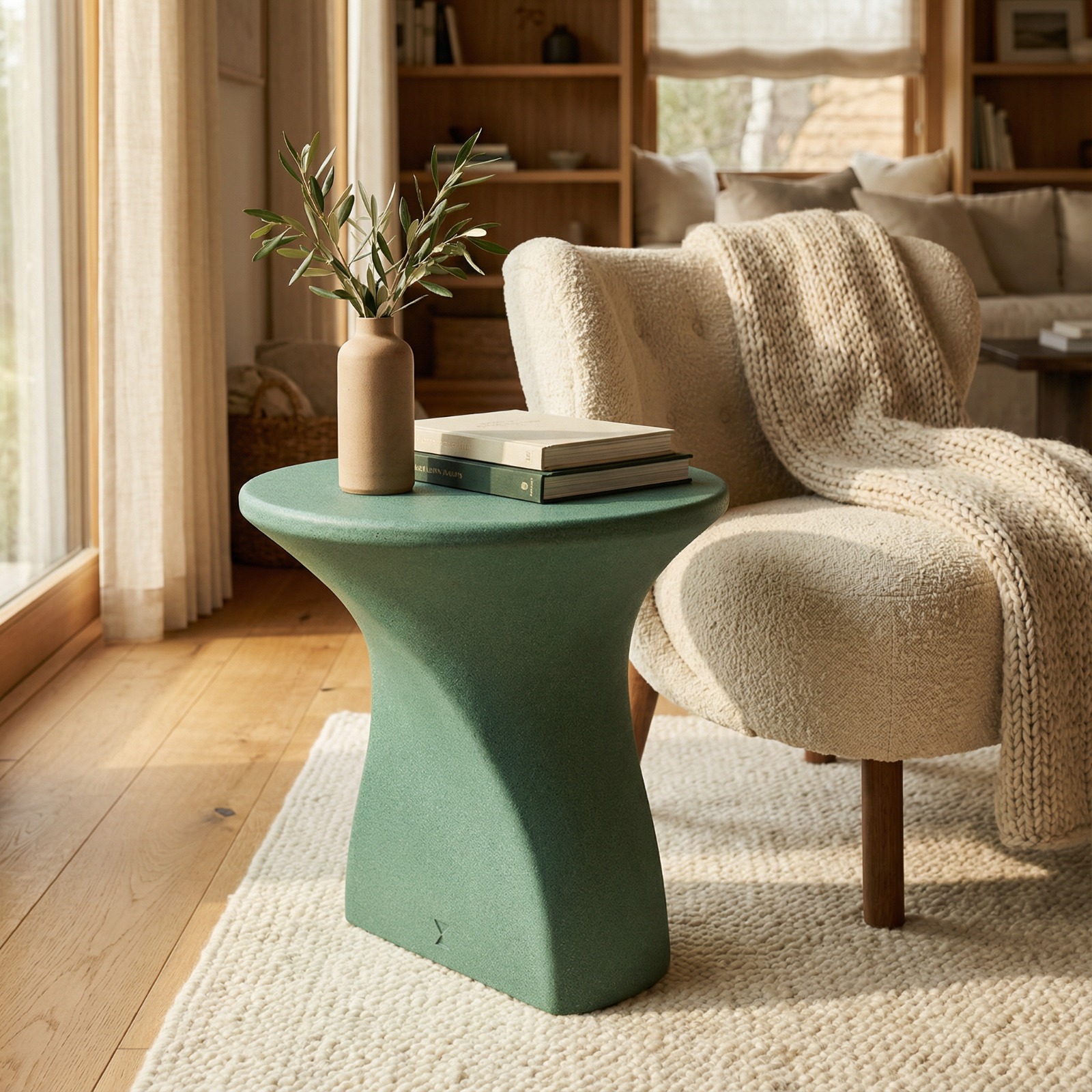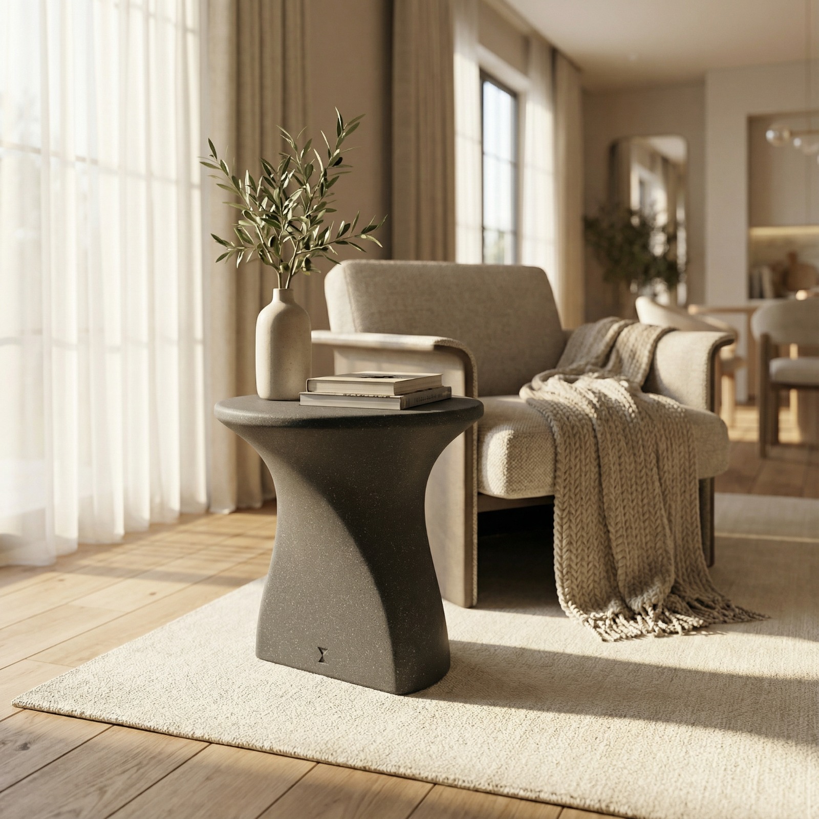 DECOMAXI Tasarım Notu: Statue serisi, yumuşak kavisleri ve monolitik duruşuyla mekanın sosyal enerjisini yumuşatan bir denge unsuru oluşturur. Betonun ham gücü, bu tasarımda modern bir heykel zarafetiyle evinizde hissedilir.